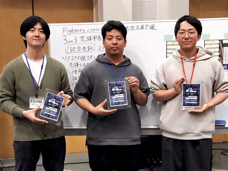 北海道新参モノファイターズファルコンタ(ケン)今井翔太(エレナ)えるあ(JP)自認北海道最強の三人チームです!本戦も頑張ります!