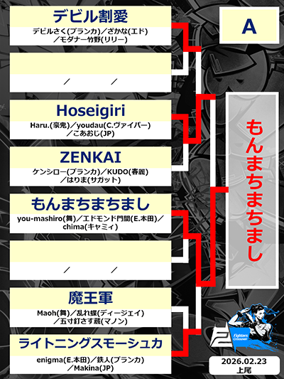 優勝候補が早々に敗れる中、決勝の組み合わせは遠征勢「もんまちまちまし(you-mashiro、エドモンド門間、Chima)」と地元勢「FC上尾勢(ふえるわかめ、ふーご、STG)」。