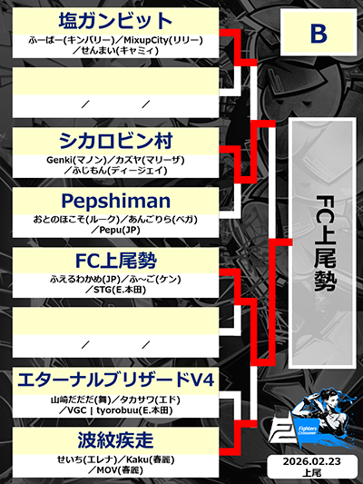 - 対戦会会場第一尾花ビル 4F 特設イベントスペース(12チーム参加)