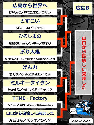 最後は画面端のプレッシャーから渾身のインパクトを叩き込み、見事なパーフェクトKO。チーム名通り、優勝候補を「破壊」して回った『山口から破壊しに来ました』が、広島の青切符をその手に掴んだ。