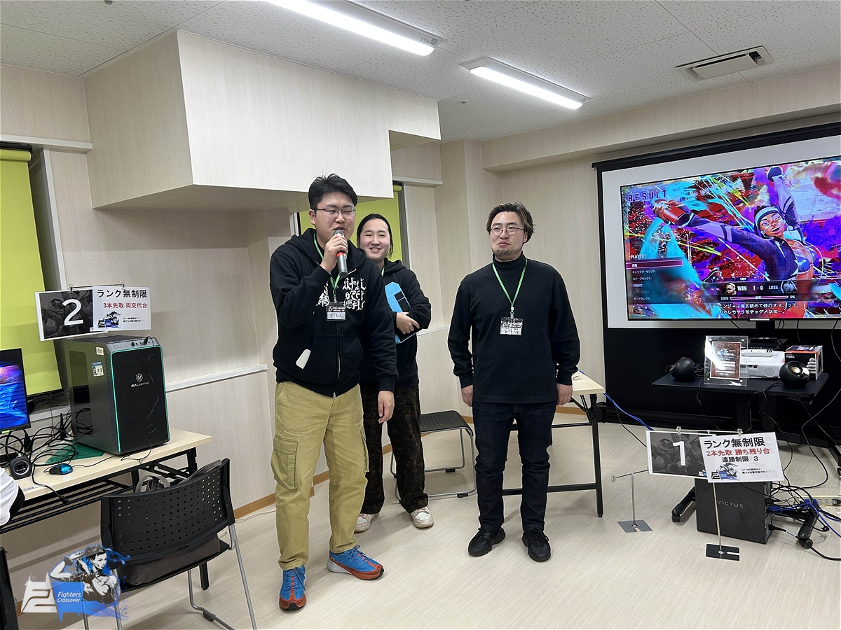たくちゃん選手のベガ、ストロング佐々木選手の本田、とぐろ1/2選手の不知火舞、東北では言わずと知れた強豪たち全てをなぎ倒し、決勝戦での3タテを決めて優勝となりました。勝利を決めた瞬間は会場中に拍手が沸き起こり、こもら選手からもガッツポーズが飛び出していました。メンバーのあたーう選手も、こもら選手を讃えて喜んでいました。