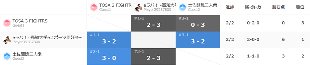 FC香川より遠征のSANKAN選手が先鋒にて鮮やかに2人抜きしたがeラバチームの大将Nkyo選手が根性を見せなんと3人抜き!