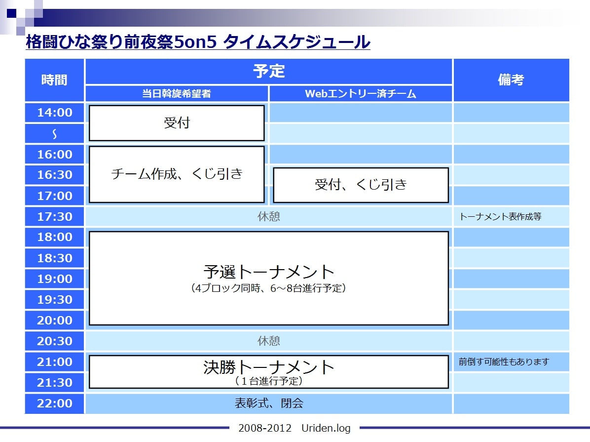 注意事項 :翌日の本戦に影響が出ないよう、時間厳守でお願いいたします。