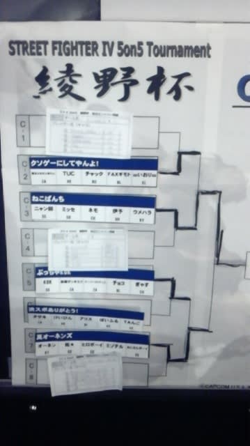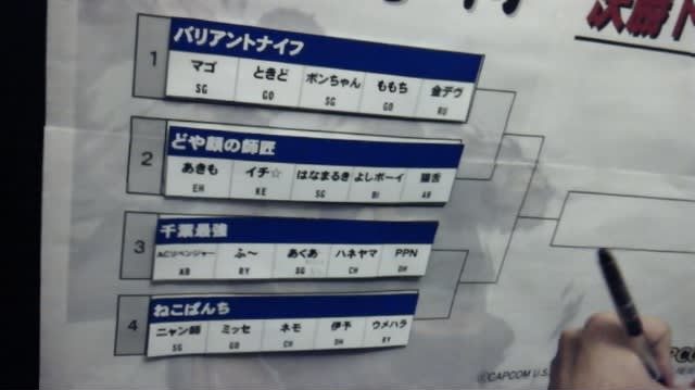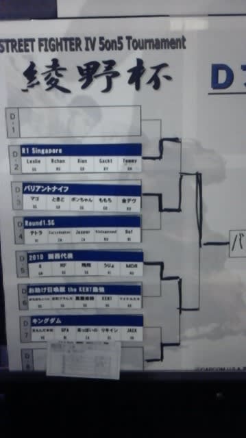 2010/09/18日記 綾野杯結果(簡易版) 優勝 :ねこぱんち ニャン師 SG ミッセ GO ネモ CH 伊予 DH ウメハラ RY 準優勝:バリアントナイフ マゴ SG ときど GO ボンちゃん SG ももち GO 金デヴ RU Aブロック 写真待ち Bブロック Cブロック Dブロック なお、大会中運営側に至らない点がありましたこと、お詫び申し上げます。 多数の参加、観戦ありがとうございました。 闘劇がひと段落したら綾野杯サイトを更新いたします。 前の記事へ 次の記事へ