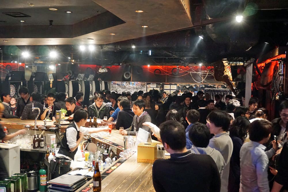 さて本番の飲み会。今回も会場はBee新宿を貸切で行いました。