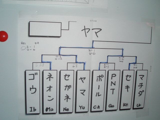 決勝トーナメントでは、ヤマ(YU)が前回1位のネオン(MA)、2位のゴウ(IB)のいる激戦ブロックを制し、