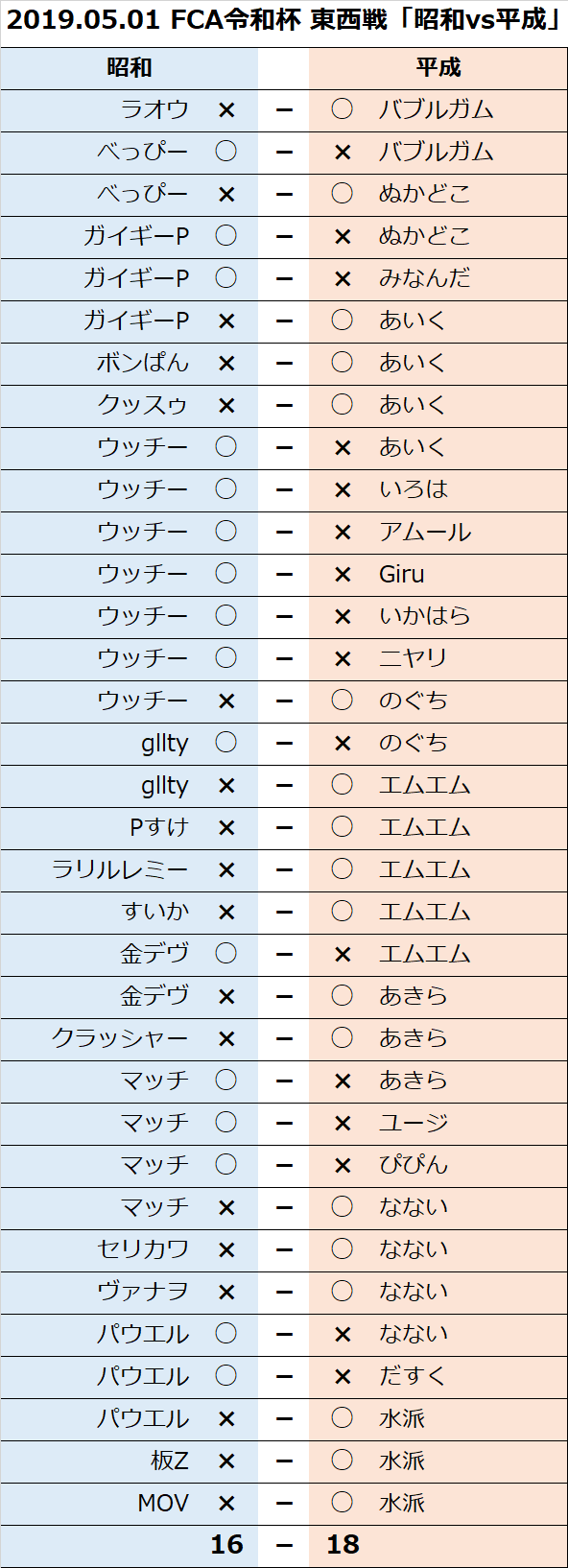 ※早めに大会終わらせて「昭和vs平成」の東西戦やります。 なお、時間によっては全員参加できないこともありますのでご了承ください。