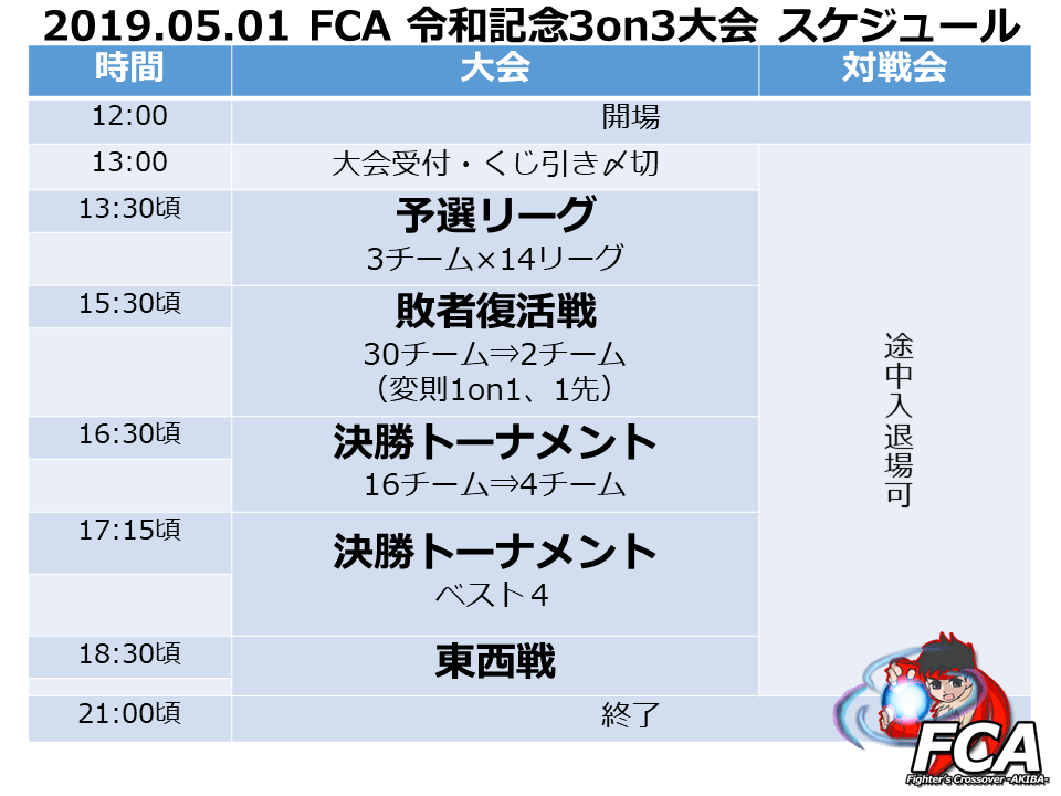 【SFVAE大会】2019.05.01 FCA令和記念3on3大会+αについて