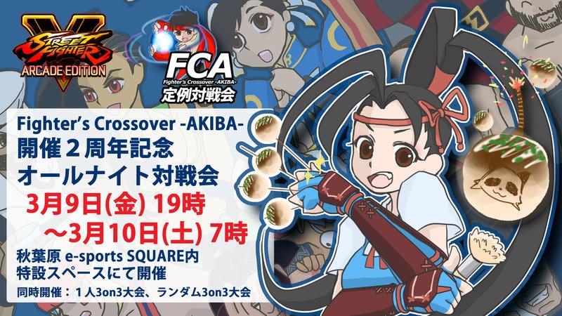 Fighter’s Crossover -AKIBA-の2周年を記念して、オールナイト対戦会と大会を開催します。