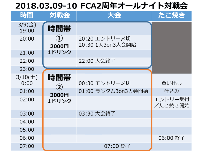 2018.03.09-10 FCA対戦会2周年記念オールナイトについて