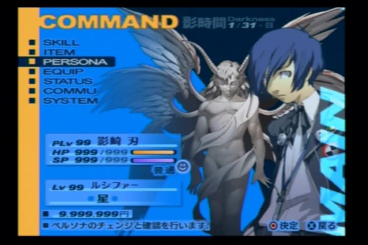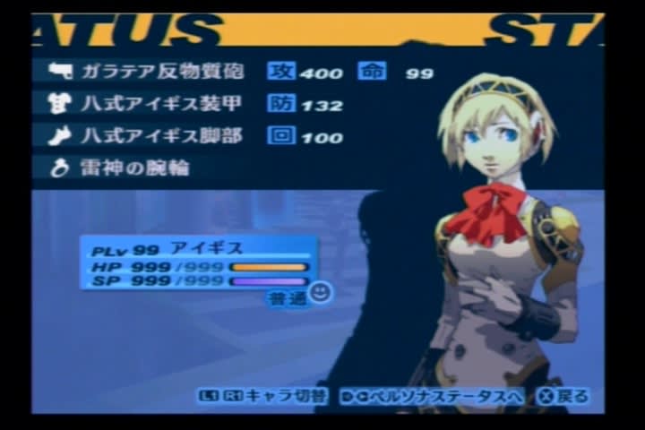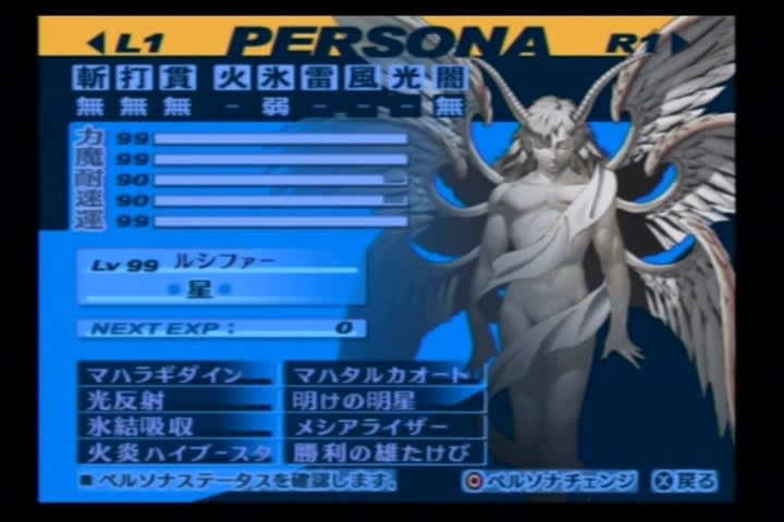 全員LV99、最終装備ペルソナ ルシファー プレイ時間110時間。