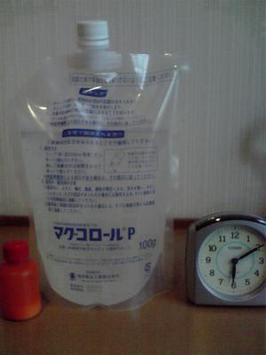 写真は、朝一に飲む1.8Lの下剤。きつかった・・・