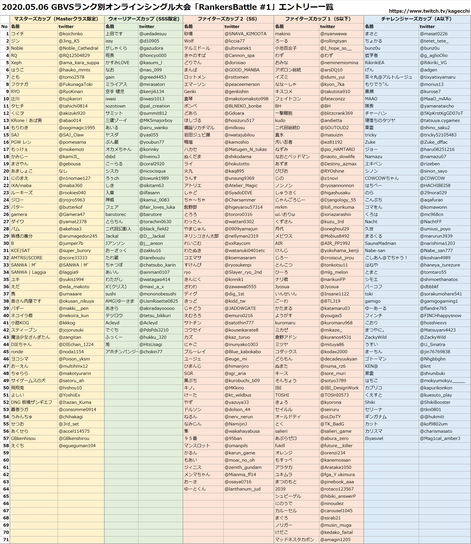 ※エントリー〆切時までにランクが上がってトーナメントを変更したい場合は、ツイッター等でご連絡ください。
