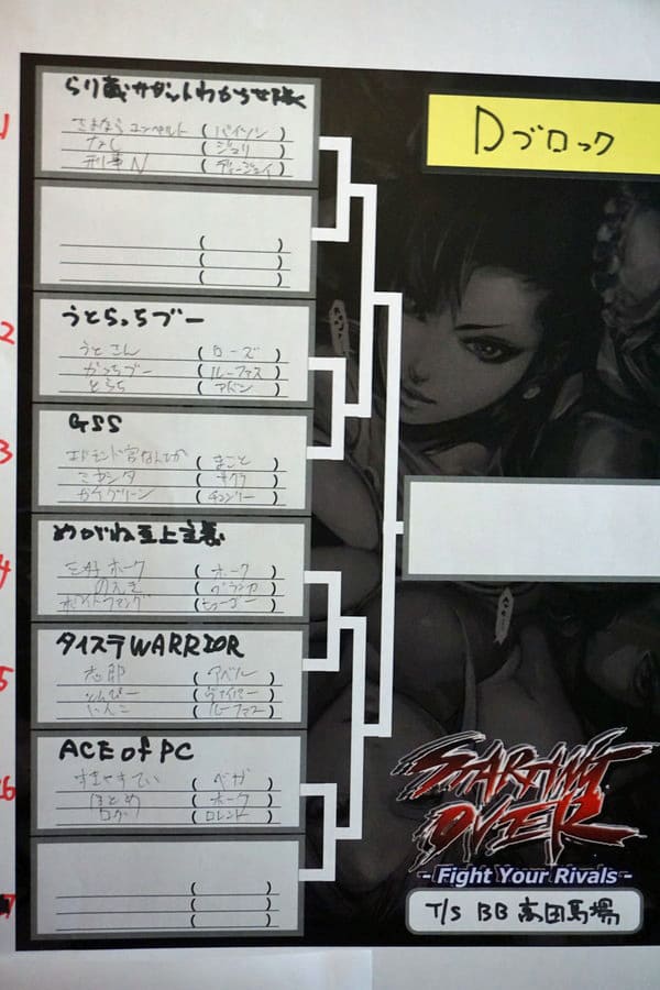 前日の閉店後にレイアウト変更から、設営やらトーナメント表やらの準備を明け方まで。