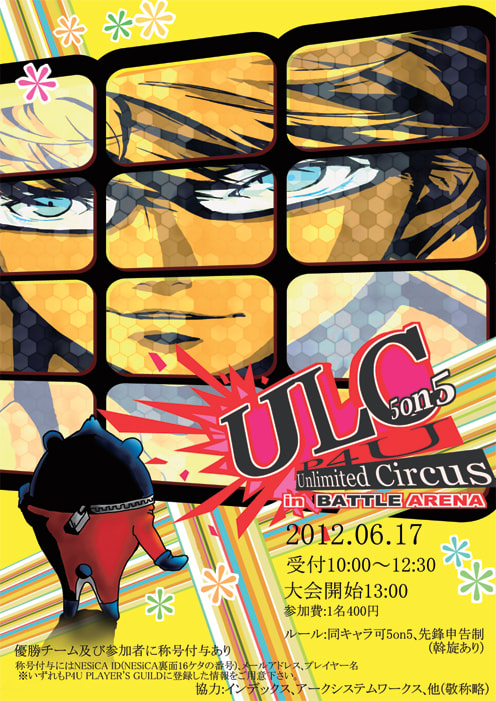 ![]() | 大会名 :P4U Unlimited Circus 5on5 in BATTLE ARENA 開催店舗:CLUB SEGA 新宿西口 ⇒twitter 大会形式:5on5(キャラかぶりあり、斡旋あり) 大会受付:10時~12時半 大会開始:13時 参加費 :1チーム2000円 特別称号:【優勝チーム特別称号】『マヨナカアリーナご当地チャンプ』 ※参加称号も別途あります 動画配信:配信URLはコチラ 協力 :インデックス、アークシステムワークス、アルカディア、Uriden.log |