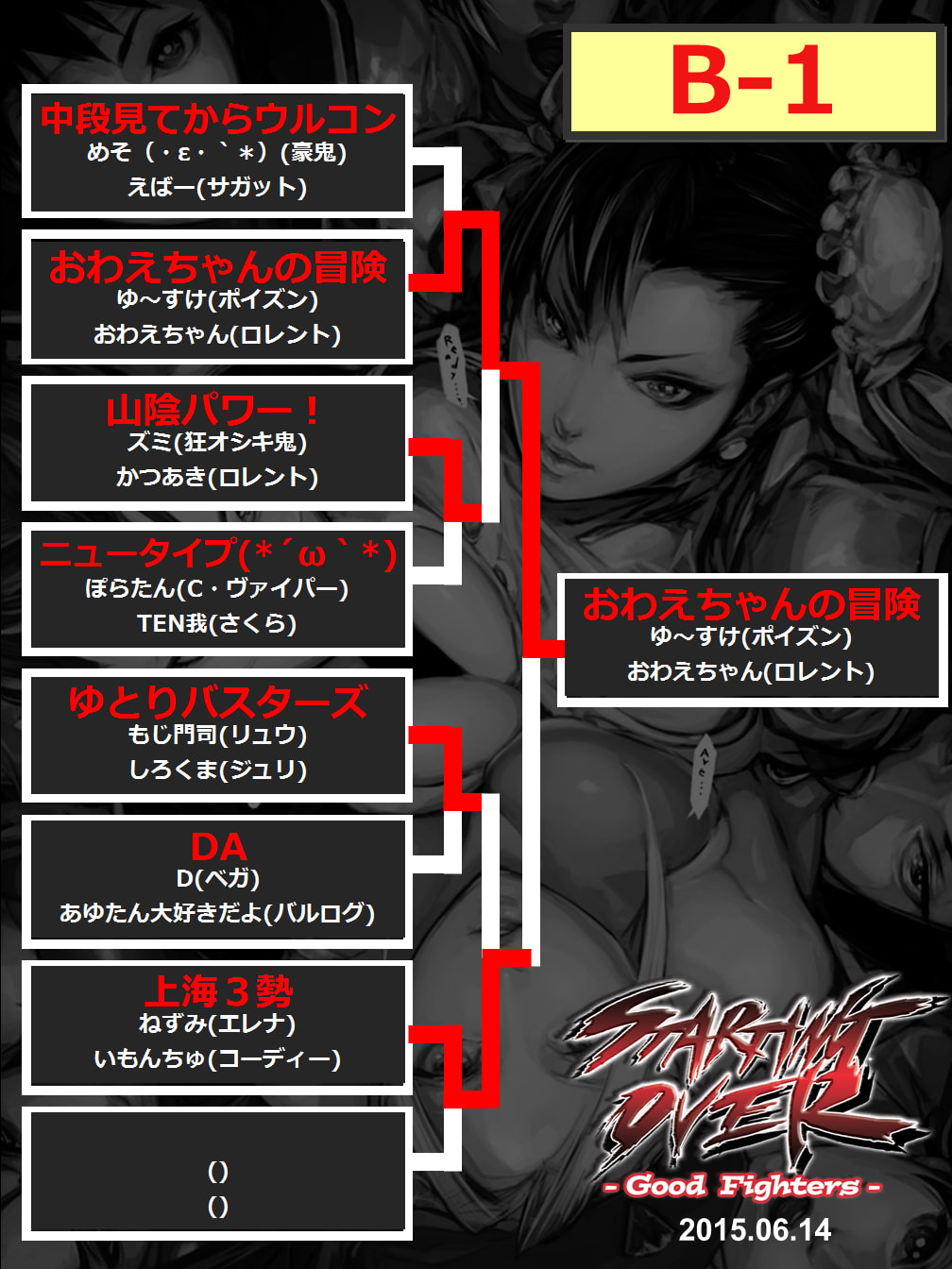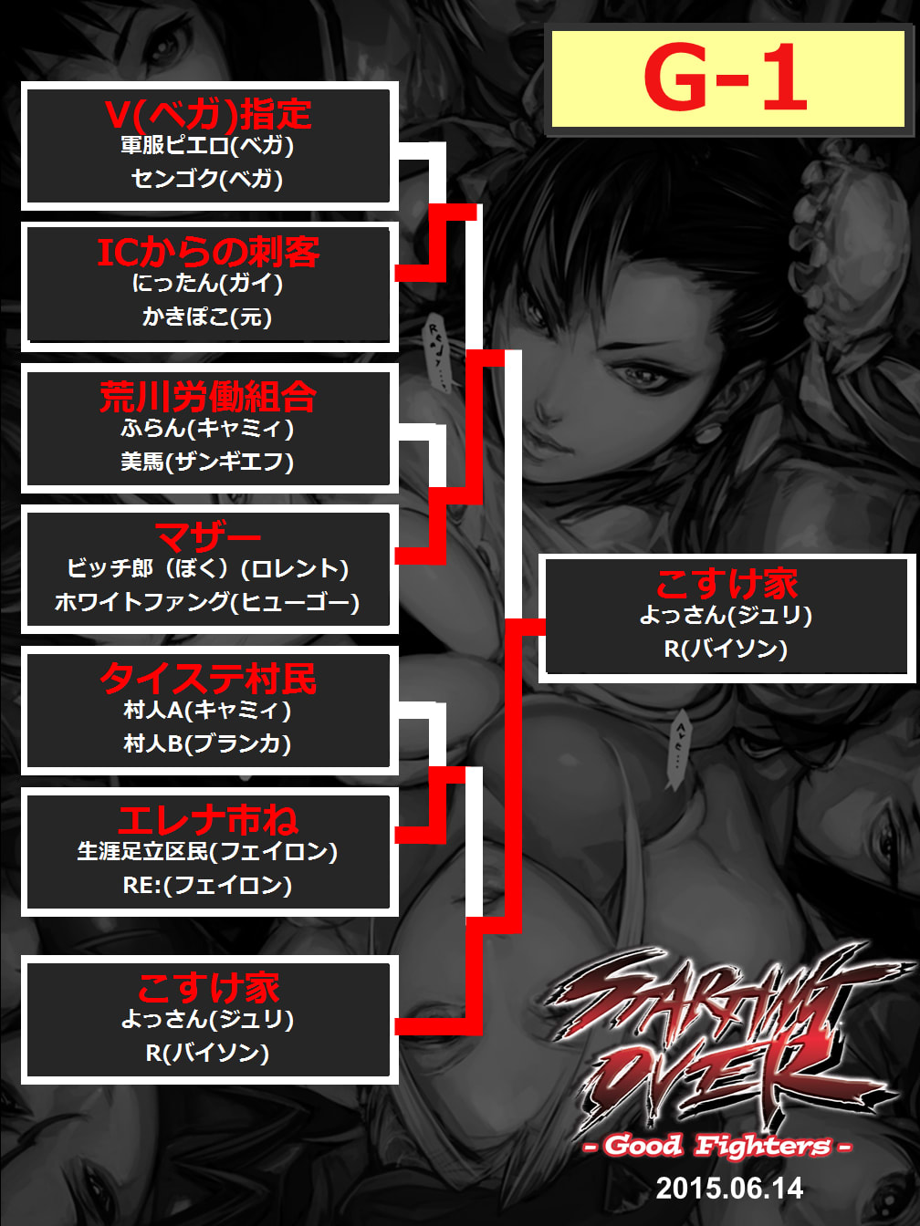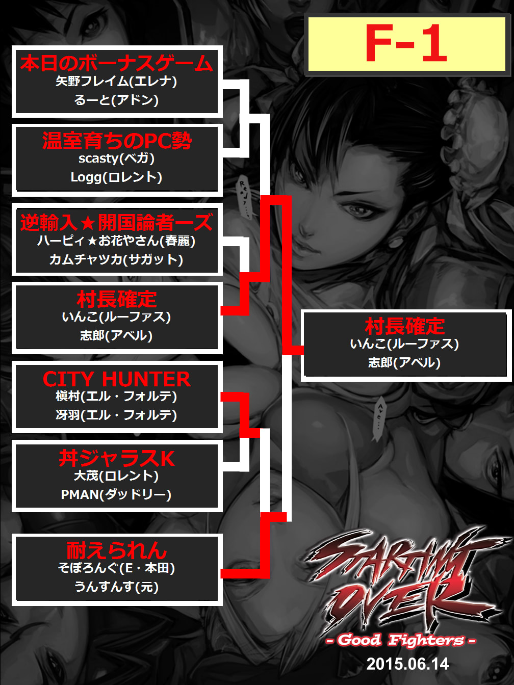 (前半)2015.06.14 USF4西セガ2on2大会 STARTING OVER -Good Fighters- トーナメント表